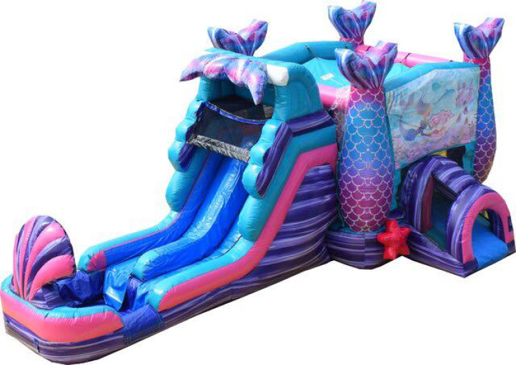 Make a splash at your next party with the Mermaid Combo Dual Lane Slide Bouncer! Perfect for little mermaid lovers, this enchanting inflatable brings under-the-sea magic to life. Bright colors, whimsical details, and a roomy design keep kids playing and smiling longer.